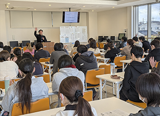 大阪城南女子短期大学総合保育課と現代生活課の皆さんを対象に「生活設計・家計管理セミナー」を開催しました。 将来の夢や目標を考えながら、ライフイベント表の作成を通じて計画的な貯蓄の必要性をお伝えし、生徒の皆さんが、将来をイメージしながらワークに取り組んでいる姿が印象的でした。また就職後、自分の給料で生活するための家計管理のポイントや、給料明細書の見方をお伝えしました。 これからも未来を担う若い方々が、社会に出た時に役立つ知識をお伝えしてまいります。 |