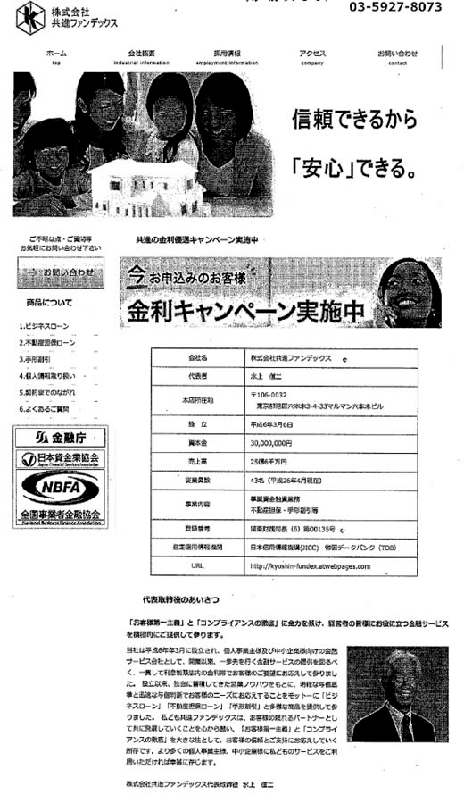 | ≪掲載日:平成26年10月3日≫ 日本貸金業協会の協会員を装い、HP等により融資の勧誘を行っている。 | ||||