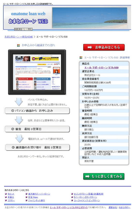 | ホームページにて融資の勧誘を行っている。 | ||||