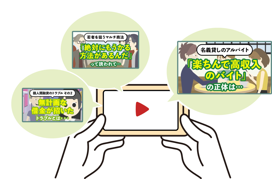 金融被害の事例を動画で紹介。その他、金融トラブル防止に役立つツールをご案内しております。
